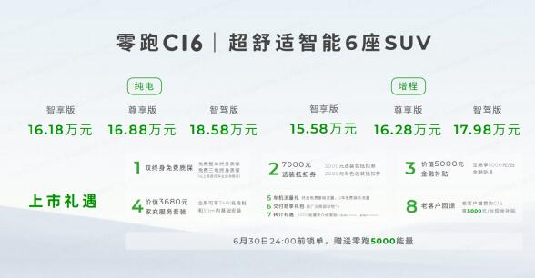 6月28日晚間消息,電動(dòng)汽車公司零跑科技在金華召開零跑C16上市發(fā)布會(huì),該車定位家庭6座SUV,分純電、增程兩個(gè)版本,上市指導(dǎo)價(jià)格15.58-18.58萬元。