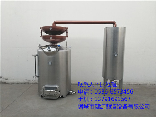 本機(jī)主要適合小型酒廠果酒蒸餾。可以采用煤炭、電或燃?xì)饧罢羝闹苯踊蜷g接加熱。