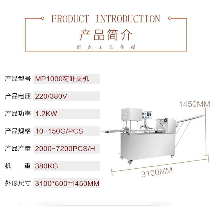 1、旭眾牌荷葉夾機采用連續(xù)壓面工藝,仿人工卷面,不傷面筋,使面皮光澤、品質更加穩(wěn)定,口感更好。