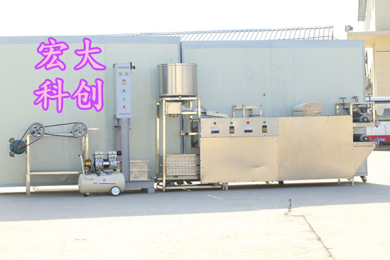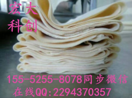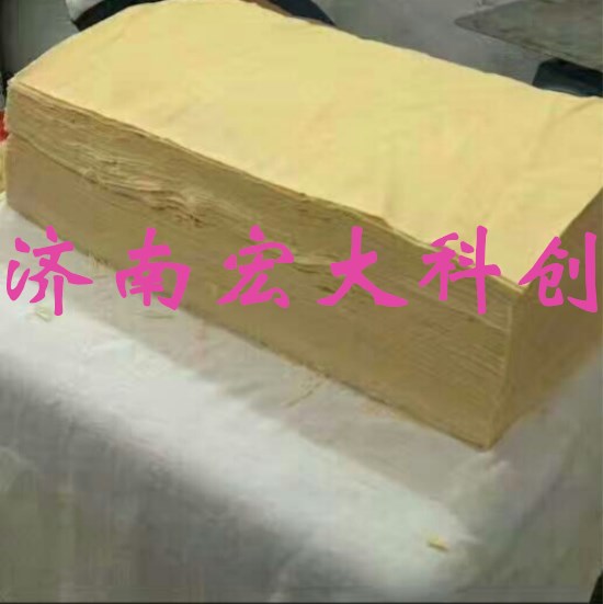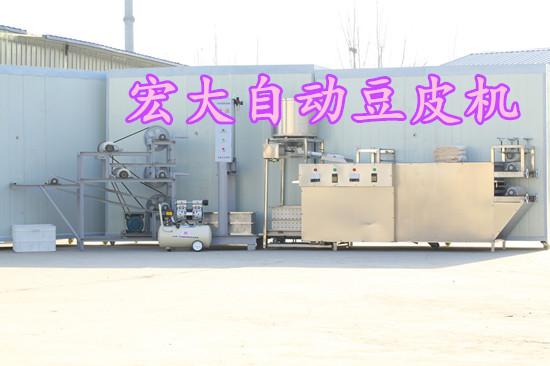 宏大科創(chuàng)豆腐皮機(jī)工藝流程:選料(泡豆)→磨漿→煮漿→點(diǎn)漿→粉 腦→壓制→剝皮→成型