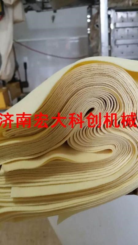 宏大科創(chuàng)豆腐皮機效益分析:本廠機器2人即可操作,日產(chǎn)量1500斤,每斤大豆生產(chǎn)1—1.6斤,豆價2元/斤,皮價2.7元/斤,每斤大豆加工后得純利潤0.7元,按日產(chǎn)1000斤計算可獲利700元(豆渣可抵工資與電費)。