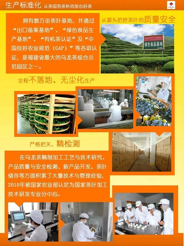 安 溪茶廠香香茶業(yè)現(xiàn)有茶園六萬(wàn)多畝,下轄基地茶園五個(gè)。經(jīng)多年技術(shù)改革栽培了優(yōu)質(zhì)茶葉,全面生產(chǎn)無(wú)公害和綠色有機(jī)產(chǎn)品。年產(chǎn)烏龍茶系列產(chǎn)品三千多噸,出口歐盟、日本等國(guó),是福建省農(nóng)牧業(yè)產(chǎn)業(yè)化龍頭企業(yè)。被福建省人民政府授予“烏龍茶福建名牌產(chǎn)品”稱號(hào),國(guó)家質(zhì)量臨督檢驗(yàn)免疫局(無(wú)公害農(nóng)產(chǎn)品標(biāo)志認(rèn)證)gb/t19598—2006質(zhì)量管理體系認(rèn)證。企業(yè)一直遵循“以質(zhì)為本、誠(chéng)信經(jīng)營(yíng)”為宗旨,為廣大客戶提供優(yōu)質(zhì)合格的茶葉,開拓深潛力的健康茶文化市場(chǎng)!