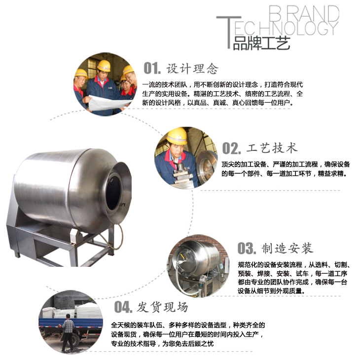 2.該機(jī)采用電腦控制變頻技術(shù),節(jié)能高,使用安 方便,轉(zhuǎn)速可根據(jù)工藝要求任意調(diào)整,噪音小,結(jié)構(gòu)緊湊,性能穩(wěn)定,滾筒兩端均采用旋壓式封頭,增加滾筒空間,滾揉效果均勻,噪音低,肉質(zhì)嫩,口感好,效率高.