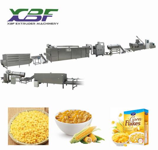 早餐谷物食品作為一種方便快捷、營養(yǎng)豐富且比較均衡的食品很快進(jìn)入千家萬戶。在現(xiàn)代加工中通常采用擠壓機(jī)來完成,對(duì)加水后玉米粉 混合物的充分揉制、蒸煮熟化和切粒壓片成型。玉米片的營養(yǎng)豐富且比較均衡,是不可多得的谷物類早餐食品,通常與牛奶一起食用。