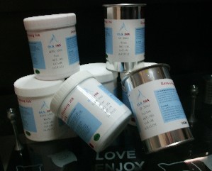 5、油墨調(diào)配:充份攪拌后取所需用量進(jìn)行調(diào)配使用,雙組份油墨先按比例添加固化劑 攪拌均勻,然后再添加稀釋劑 稀釋到合適粘度進(jìn)行印刷;添加固化劑 后的油墨過(guò)使用時(shí)限會(huì)產(chǎn)生粘稠膠化現(xiàn)象,請(qǐng)及時(shí)清洗網(wǎng)版,并棄用油墨,不可回收。