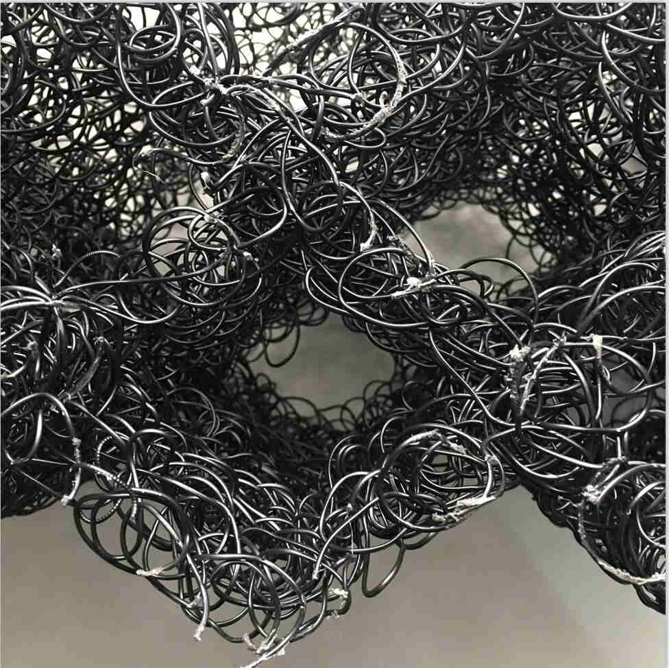 立體網(wǎng)狀填料一種主要應(yīng)用于污水處理技術(shù)領(lǐng)域的填料,具體為空間立體網(wǎng)狀填料。新型空間立體網(wǎng)狀填料的主體為由多根彎曲交錯(cuò)纏繞,互相粘接的絲條所形成的疏密有序的空間立體柱狀結(jié)構(gòu),填料的側(cè)面為竹節(jié)狀,其橫截面為網(wǎng)格狀,各網(wǎng)格中間孔洞部分構(gòu)成通道,豎向?qū)?yīng)的各網(wǎng)格交叉點(diǎn)間設(shè)有起加固作用的粗絲條。