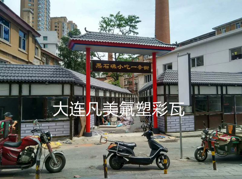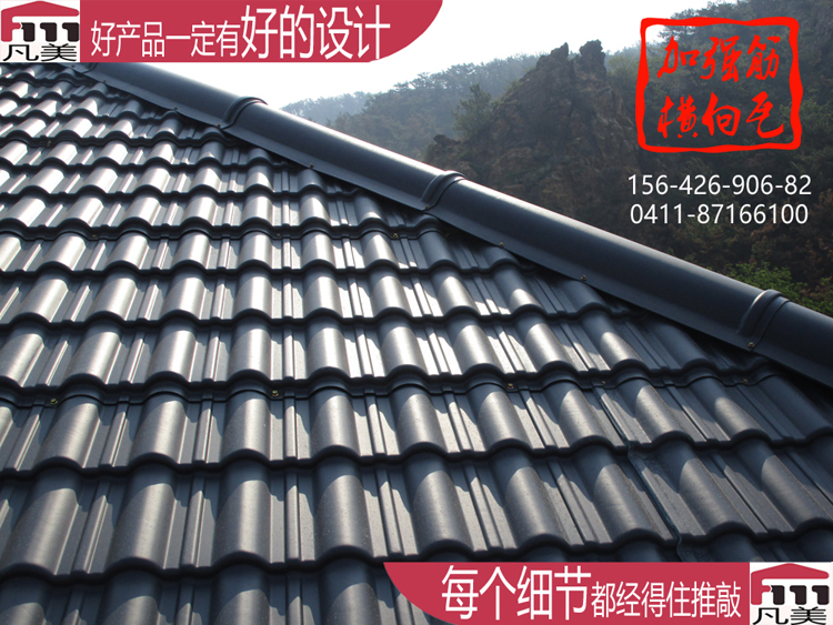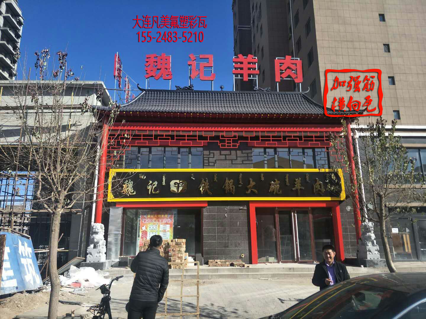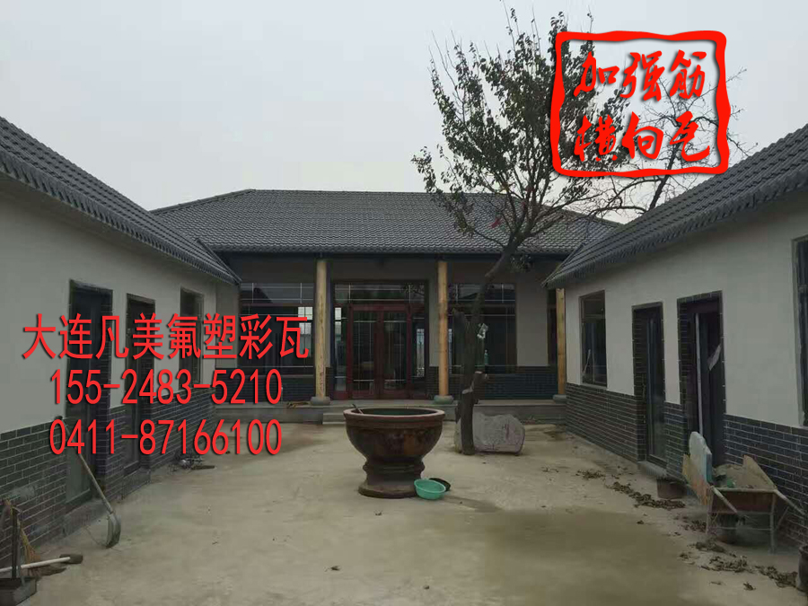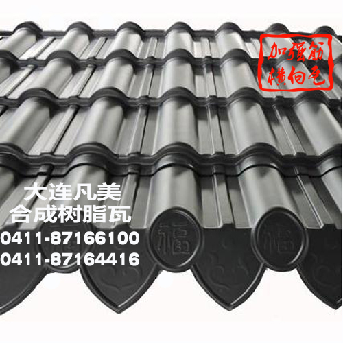 大連凡美氟塑彩瓦(橫向并有加強(qiáng)筋深灰色瓦片)(古代建筑風(fēng)格屋頂瓦片)