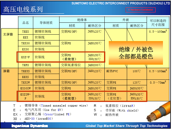 住友電動汽車電池,EV屏蔽高壓線,高壓動力線