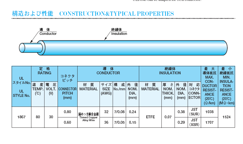 鐵氟龍:ul1867-awg(32-36)、ul10064-awg(32-40);