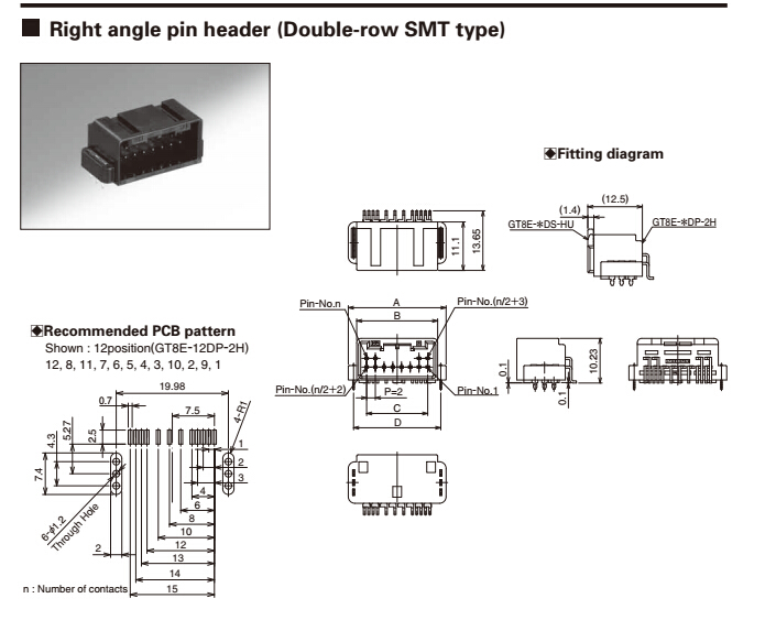 gt8e-16dp-2h間距2雙排16孔廣瀨連接器gt8e-16dp-2h