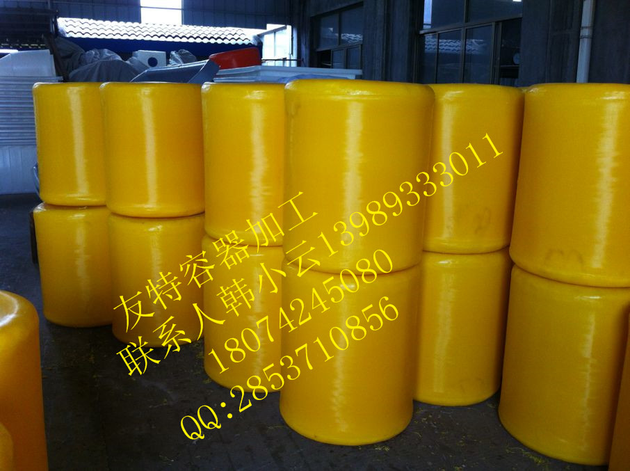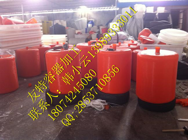 海上浮筒制造廠家——慈溪市友特塑料容器公司,最近大量加工生產(chǎn)的產(chǎn)品其中一類是水上浮筒,圓形浮球,球狀浮球,圓柱狀浮球,稱頭形狀浮球,尖底浮筒,兩半球形狀浮體。浮體類的產(chǎn)品形狀各異,因客戶要求開發(fā)。產(chǎn)品均采用韓國進口全新料聚乙烯(lldpe)原料制作,產(chǎn)品耐酸 耐堿 ,耐老化,耐腐蝕。