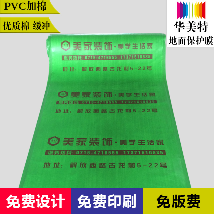 來華美特地面保護膜的客戶買的最多的型號是300g,即pvc加棉的。pvc能防水、防油漆、耐磨、抗撕拉。當有重物落下,針織棉就能夠起到減震、緩沖作用。以免損壞地板。