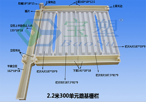 【模具名稱】2.2米300單元高鐵防護(hù)柵欄模具【品 牌】保定寶塑模具制造有限公司
