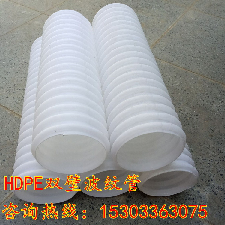 hdpe雙壁波紋管是以hdpe(高密度聚乙烯)為主要原料,分別由內(nèi)、外擠出機(jī)共同擠出,一次成型,內(nèi)壁平滑,外壁呈梯形波紋狀,內(nèi)外壁之間有夾壁空心層的塑料管材。該管材適合溫度范圍較大(+60℃-20℃),因其獨(dú)特的結(jié)構(gòu),產(chǎn)品具有環(huán)剛度高、強(qiáng)度大、質(zhì)量輕、隔音減震,較高的抗紫外線穩(wěn)定性,使用壽命長(zhǎng)彎曲性好,耐壓,抗沖擊強(qiáng)度高、耐腐蝕性強(qiáng)、耐寒耐熱等多種優(yōu)點(diǎn),管材兩頭波谷中嵌有密封膠圈,具有很好的防水密封性,可敷設(shè)在地質(zhì)較差的路段,施工快捷,廣泛應(yīng)用于通訊、電訊、電纜的鋪設(shè)。