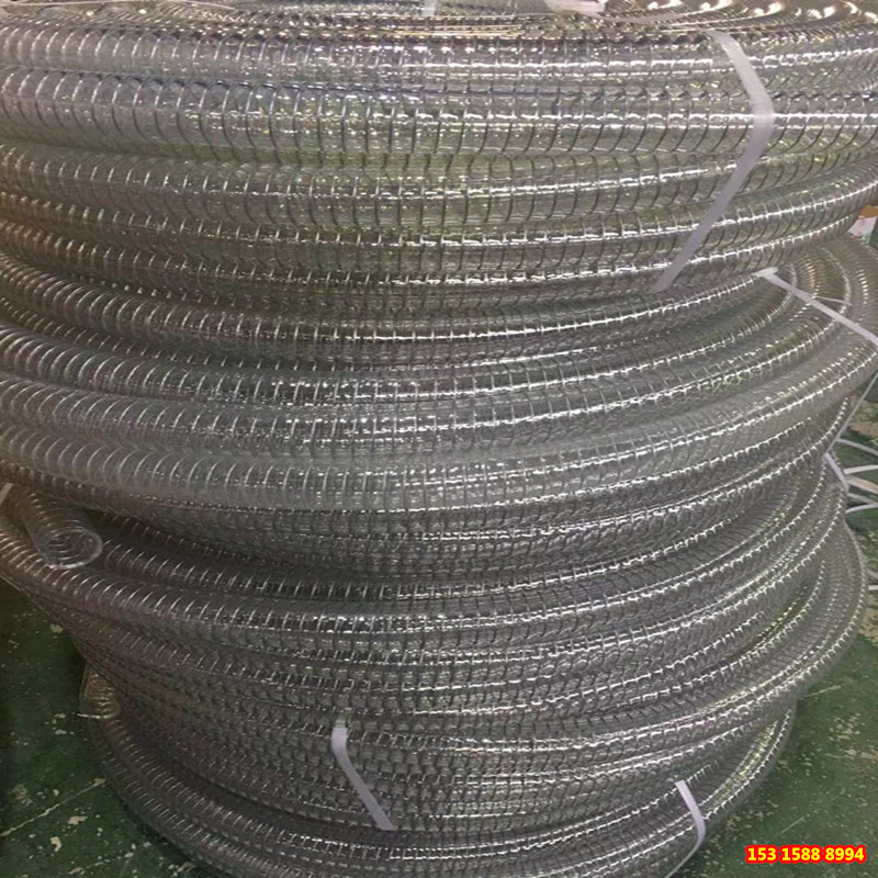 食品級輸油管采用pu材料生產(chǎn),內(nèi)外壁平滑,輸送物料不會產(chǎn)生阻力,具有抗拉伸、張力強、撕裂強度高、耐磨損、耐折曲、耐穿透、耐低溫、耐水解等性能,食品級輸油管內(nèi)部平滑,使流動特性更優(yōu)化,可伸縮的;高抗張強度,和抗撕裂強度。食品級鋼絲管管壁用堅固彈性不銹鋼鋼絲螺旋包覆,使軟管耐壓耐磨損,不分解任何氣味和味道;光滑內(nèi)壁不粘水,非常柔軟,質(zhì)輕、易于打理,耐風(fēng)雨和老化,是一種高性能的pu鋼絲軟管。