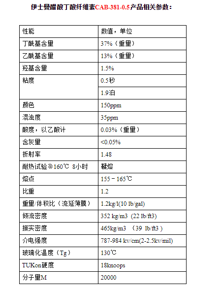 伊士曼醋酸 丁酸 纖維素 cab-381-0.5優(yōu)點(diǎn):