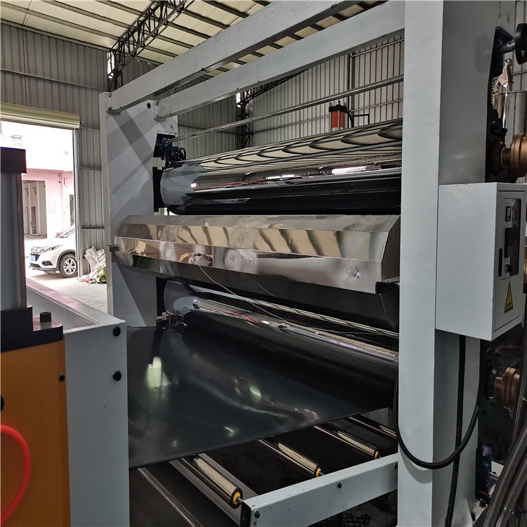 上料機(jī)采用旋轉(zhuǎn)料位開關(guān),控料位置準(zhǔn),不易壞。擠出機(jī)齒輪選用江蘇齒輪總廠的多靈齒輪。模具材質(zhì)采用模具鋼,流道均勻,成型好。三輥壓光機(jī),輥面光滑,輥面可聯(lián)動可滾動,運(yùn)行穩(wěn)定。模溫機(jī)單油路控制,自動控溫,控溫穩(wěn)定。冷卻輥支架:配置相應(yīng)的冷卻導(dǎo)輥,使冷卻效果達(dá)到要求。另配有切邊裝置,保證了片材定尺寬度和邊緣的質(zhì)量。切斷機(jī):用于長度定尺切斷,切割時(shí)與板片材同步,從而保證片材切面質(zhì)量及切割動作長期平穩(wěn)。
