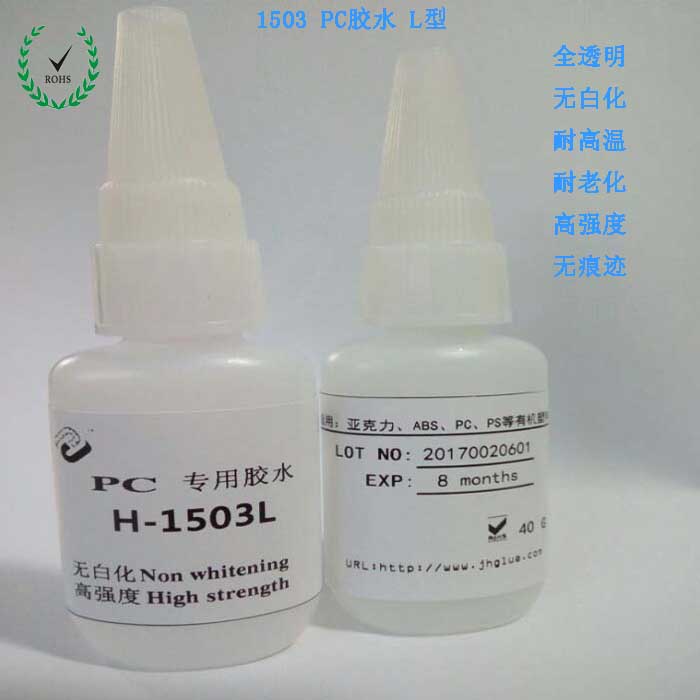 是以乙烯基聚合物為主體的單組份溶劑 膠,是粘接聚碳酸 酯的膠粘劑 。景宏h-1503l pc塑料粘接膠水