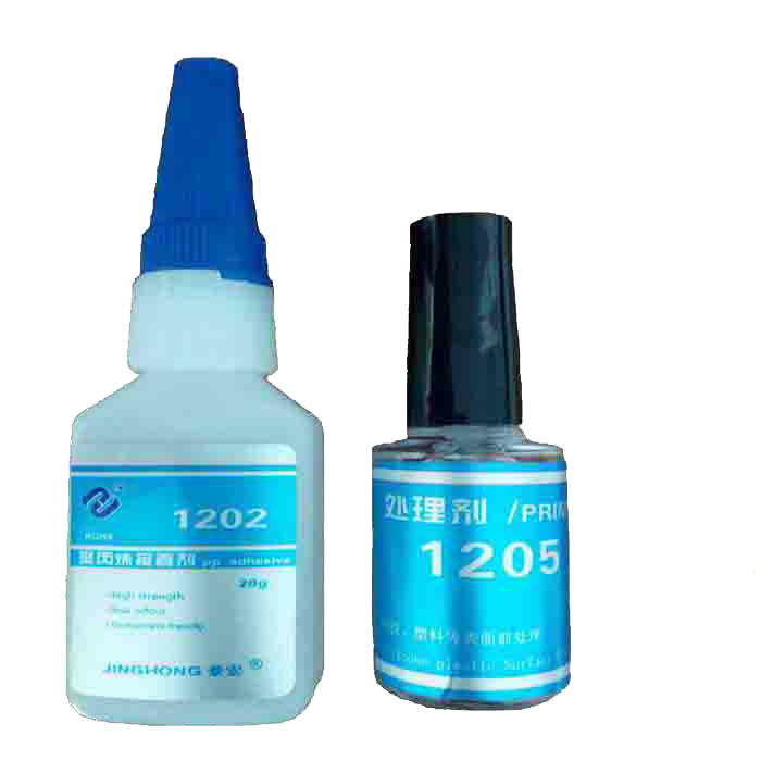 2、擰開h-1205pp處理劑 (瓶蓋自帶毛刷),均勻的在pp待粘面刷一遍,待10秒鐘左右,處理劑 揮發(fā)掉(處理過的材質(zhì),需在60分鐘內(nèi)粘接完畢);再點上適量h-1202pp膠水(很小面積粘接,可套上針頭或者滴管,以控制膠量),貼合即可。