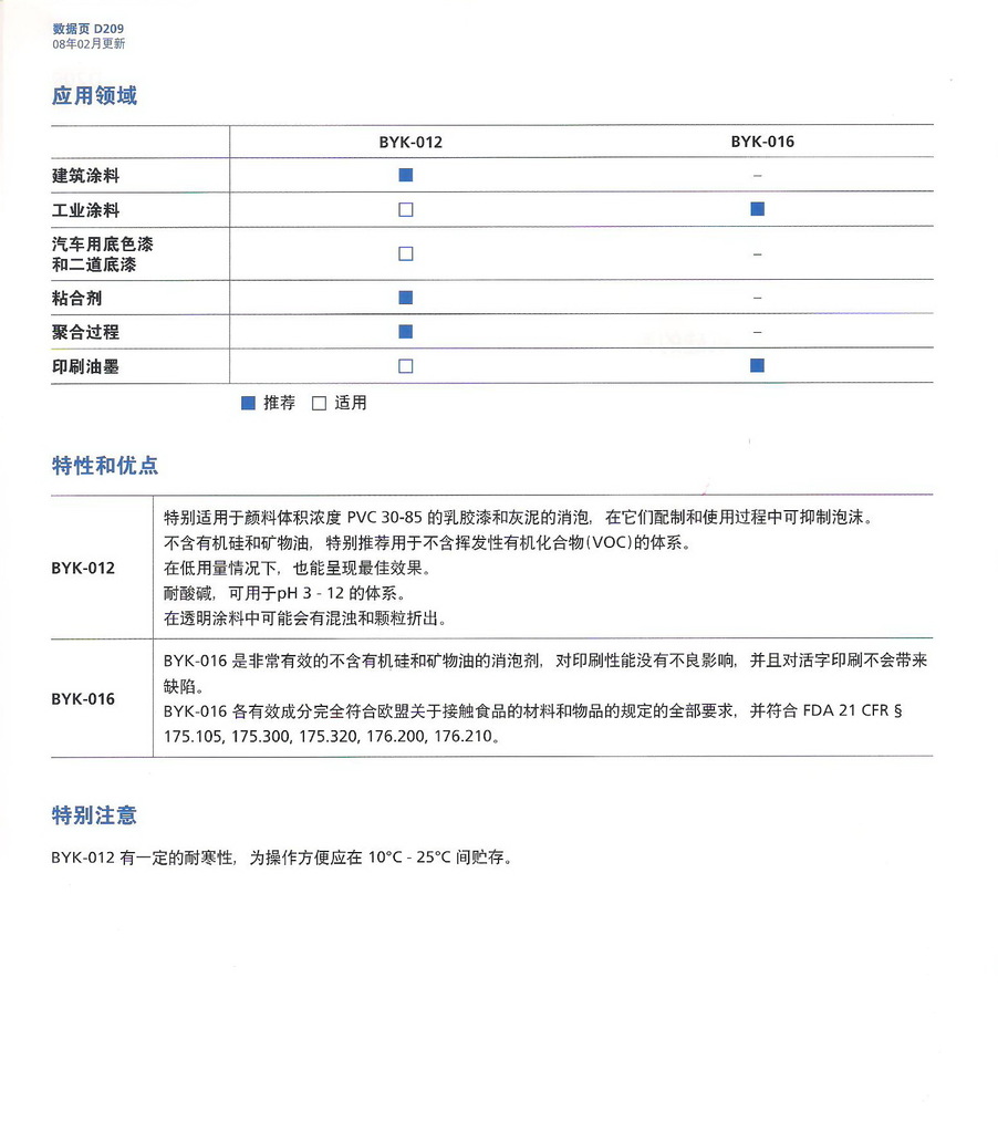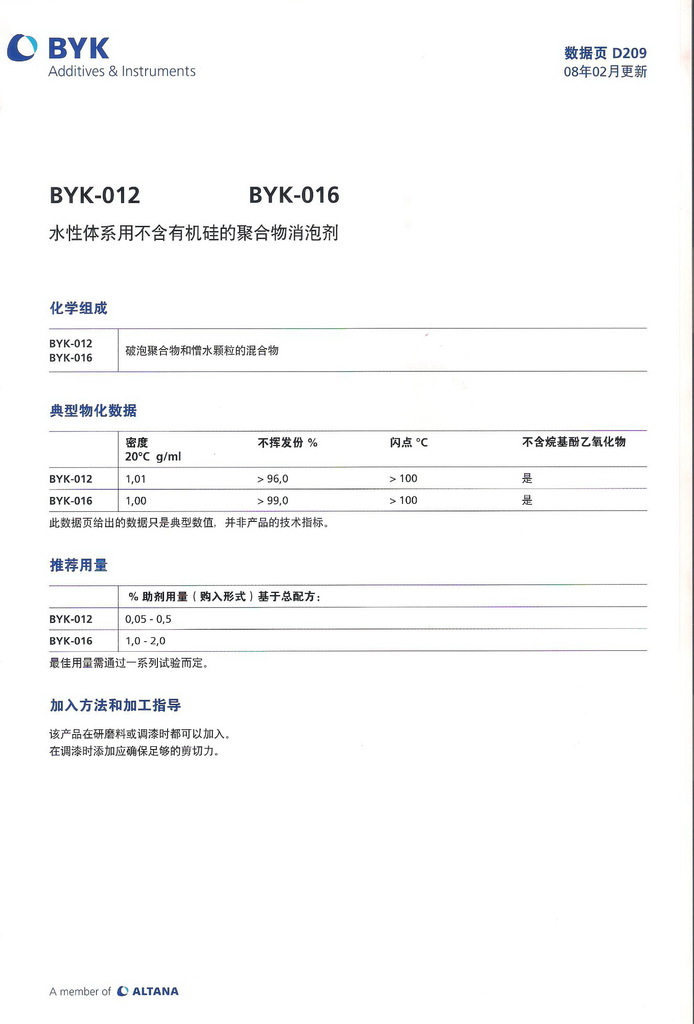 byk-016 各有效成分完全符合歐盟關(guān)于接觸食品的材料和物品的規(guī)定的全部要求,并符合 fda 21 cfr §