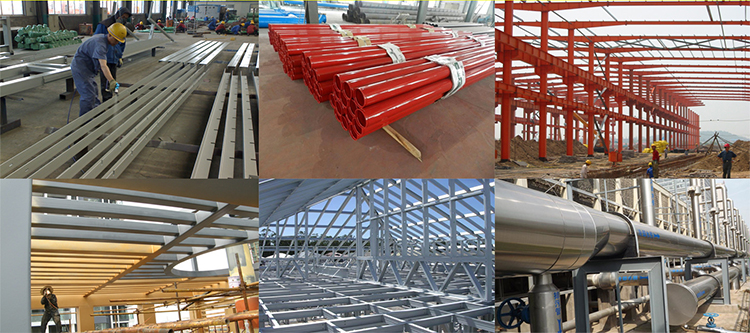 基材→噴砂、拋丸除銹→環(huán)氧富鋅底漆→干燥→環(huán)氧云鐵中間漆→干燥→鋼結(jié)構(gòu)專用底漆→鋼結(jié)構(gòu)重防腐氟碳漆→干燥→重防腐氟碳罩光清漆→干燥→檢驗(yàn)→覆膜保護(hù)