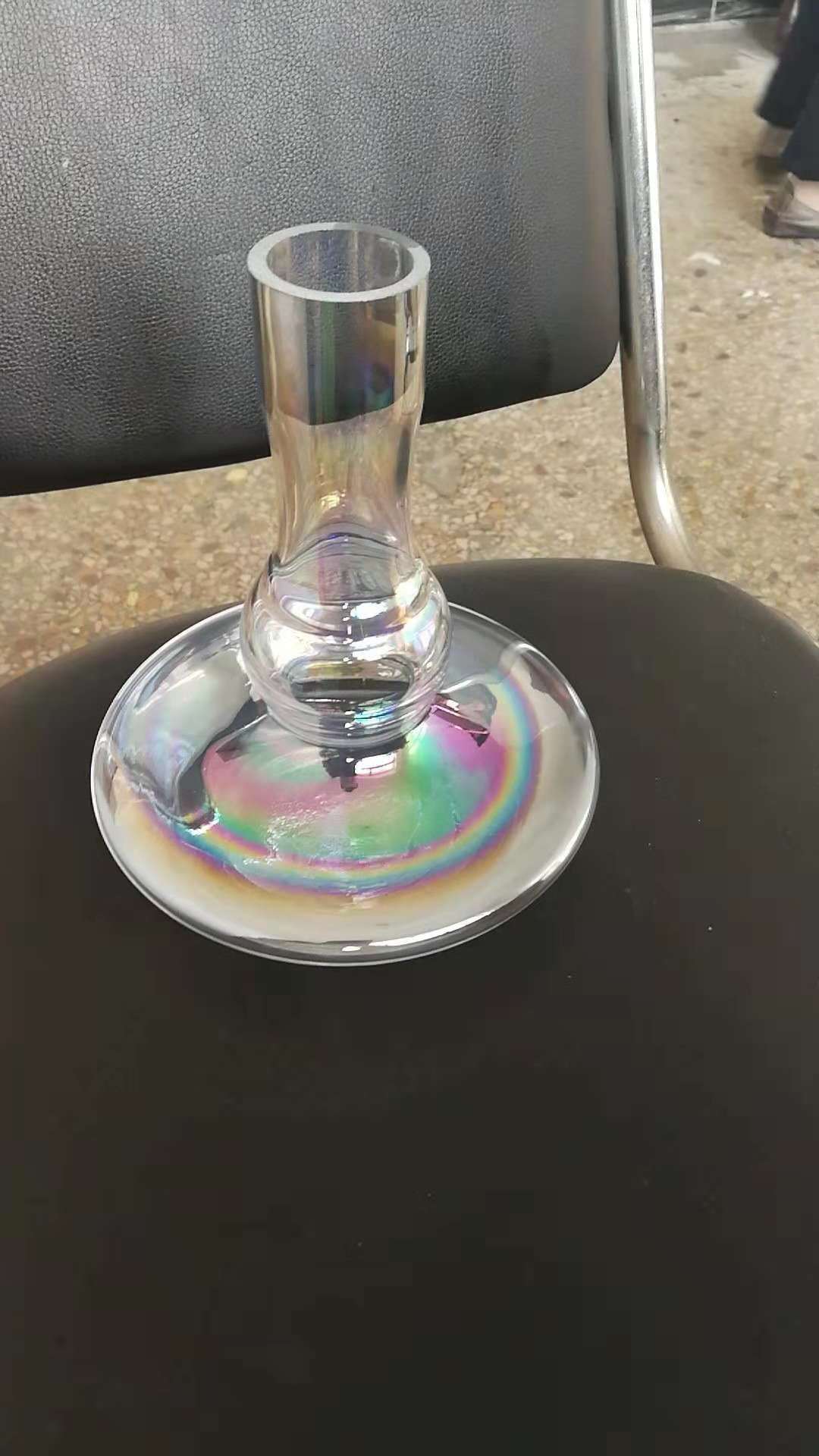 【施工方式】熱噴五彩水使用時,用噴槍把材料噴到預(yù)熱好的540-580度熾熱的玻璃工件表面,玻璃表面瞬間即形成閃亮的五彩虹效果,經(jīng)過退火而成。冷噴五彩水使用時,用噴槍或毛刷刷在清潔的玻璃工件上,放入窯爐,從室溫慢慢升到540-580度的高溫,恒溫10-20分鐘后退火而成。