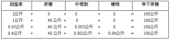 甜蜜素與蔗糖及0.3%重量的有機(jī)酸及10%重量的糖精一起配合使用,甜度可達(dá)150倍以上。