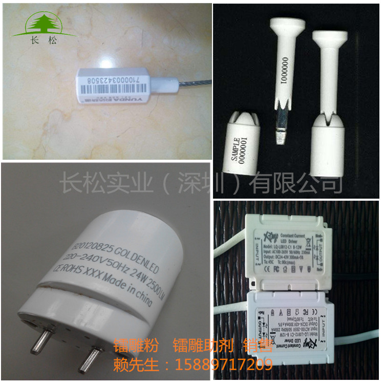 用塑料材料做成的部件難免會要標(biāo)記上一些logo、圖文、字體之類的廠家信息以及產(chǎn)品參數(shù)使用說明等。但由于塑料材料基材的限制,用激光標(biāo)記時會出現(xiàn)標(biāo)記圖文模糊不清晰,識別度不高等問題。加入了塑料鐳雕粉 后效果會提升很明顯,很好的解決了上述問題,并且對基材本身的物性指標(biāo)基本上沒有任何影響。塑料鐳雕粉 適用于各類塑膠塑料制品鐳雕效果不理想,字體顏色不美觀,或者鐳雕不上,同時可提高激光鐳雕打標(biāo)速度,提高打標(biāo)效率,提高產(chǎn)量,增加效益。塑料鐳雕粉 適用范圍包括pp,pc,pbt,pa,tpu,ps,pe,abs等樹脂產(chǎn)品激光鐳雕黑雕白,黑雕金,彩雕黑,白雕黑。注塑成型時加入塑料鐳雕粉 ,也可以直接和塑膠粒抽粒成鐳雕料即可。