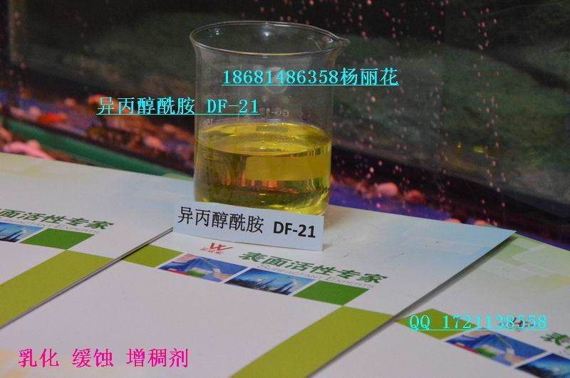 該品具有超強(qiáng)分散、凈洗、乳化、柔軟等性能,對(duì)陰離子表面活性劑 有較好的穩(wěn)泡作。是液體洗滌劑 、清洗劑 、除蠟水劑 等各種產(chǎn)品中不可缺少的原料。與油酸 皂一起使用時(shí),耐硬水性好。并廣泛用于鞋油,印刷油墨,繪圖用品等。在除蠟工業(yè)中,作蠟漬的洗滌劑 ,及具他洗滌劑 的配料和增稠劑 。超強(qiáng)除蠟水所必須材料之一。與異構(gòu)醇油酸 皂按2:3比例復(fù)配即為超級(jí)除蠟水