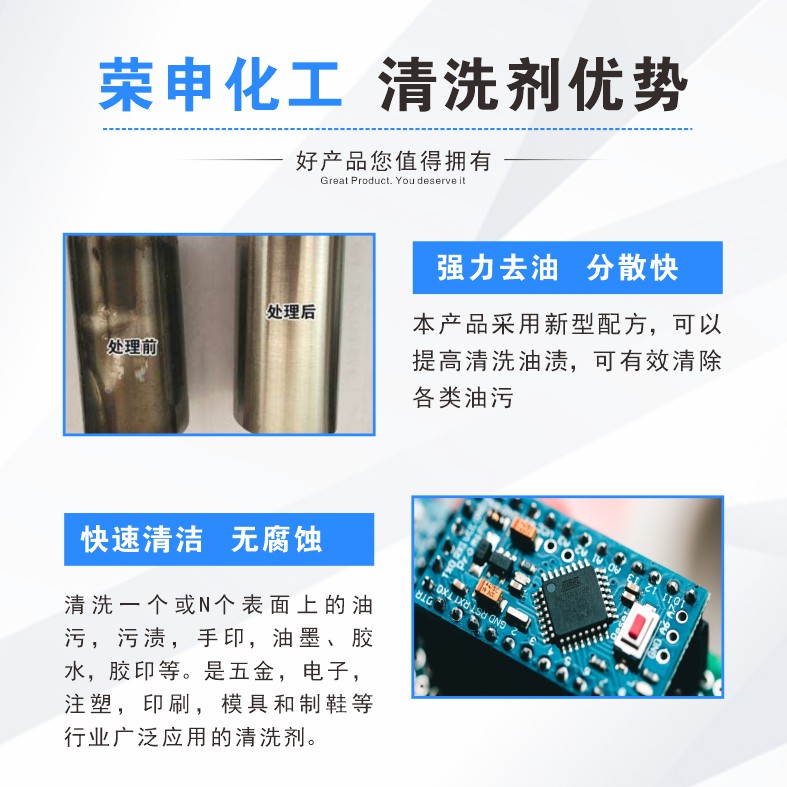 能輕易并且快速地清洗工件表面的油污,如金屬加工油、防銹油等工業(yè)油污,具有比傳統(tǒng)非環(huán)保清洗劑 更強(qiáng)的清洗能力。