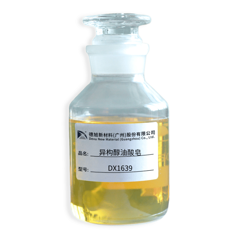 異構(gòu)醇油酸 皂DX1639是一種長碳鏈烷基酸 異構(gòu)多醇胺 皂類有機化合物,易溶于水,具有優(yōu)秀的油污蠟漬清洗性和防銹緩蝕性,既可作為表面活性劑 應(yīng)用于除油除蠟等清洗體系,也可作防銹緩蝕劑 應(yīng)用于金屬加工液體系,是一款兼?zhèn)淝逑春头冷P緩蝕的多功能表面活性劑 。