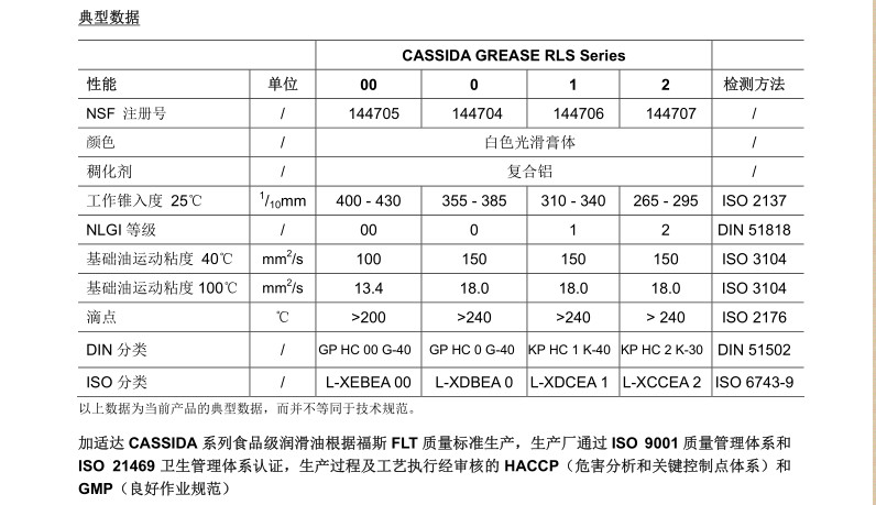 加適達(dá)食品級潤滑脂rls系列通過iso