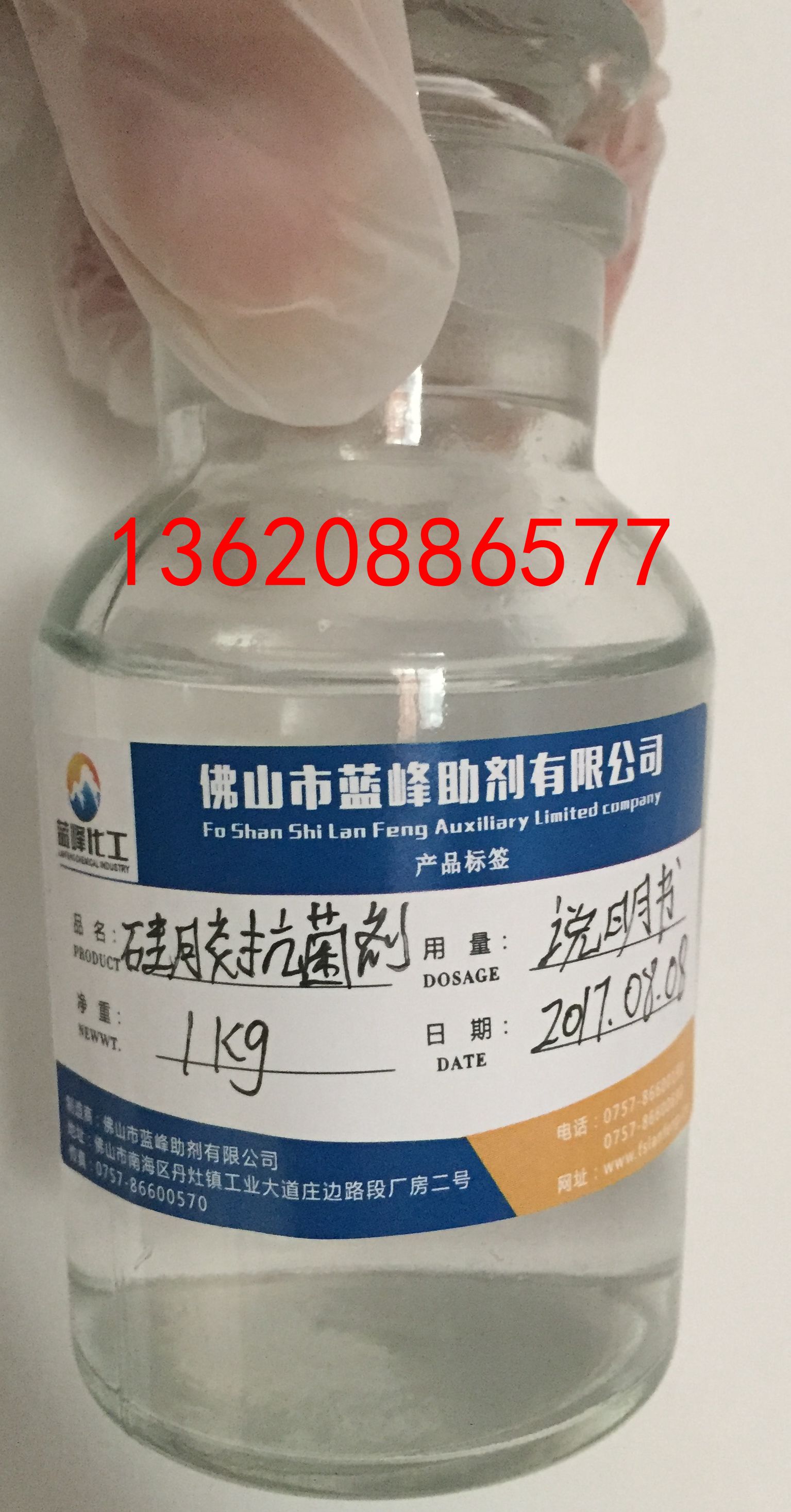 硅膠抗菌劑 采用5kg罐子包裝,請(qǐng)將本產(chǎn)品放在陰涼干燥的地方,且兒童不宜接觸,避免接觸到口、鼻、眼睛等,如接觸到眼睛或口鼻,請(qǐng)立即用大量清水沖洗。