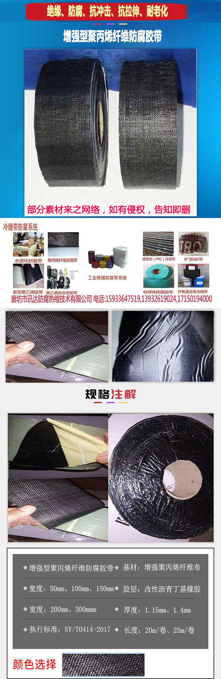 聚丙烯增強纖維防腐膠帶 聚丙烯纖維防腐膠帶 粘彈體膠帶外用冷纏帶 管道防腐膠帶 pipecoat新型聚丙烯增強纖維防腐膠帶