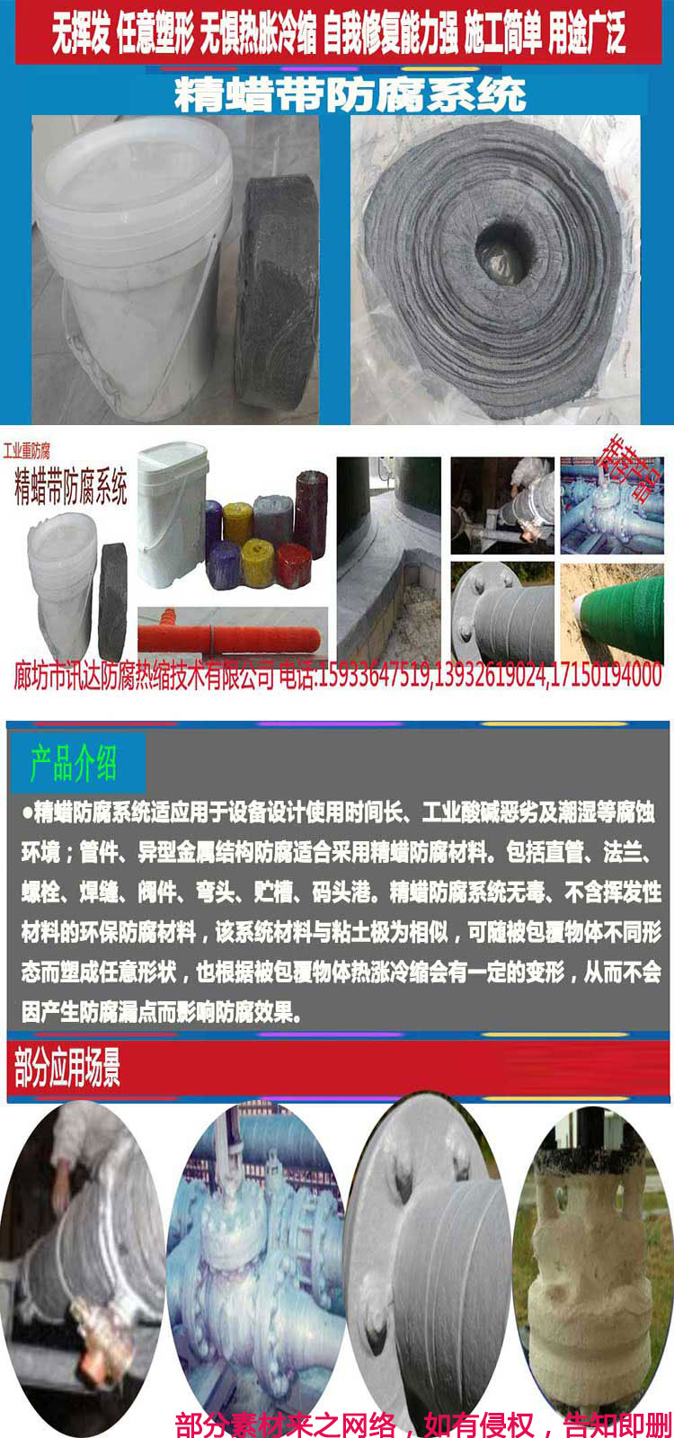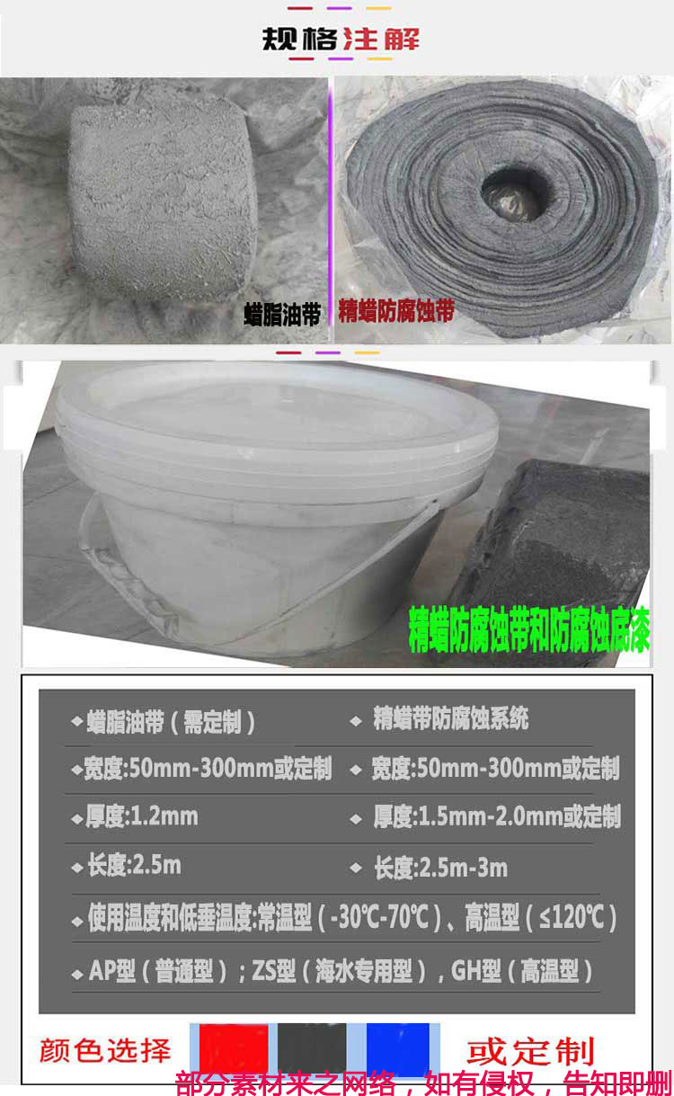 4、可以根據(jù)防腐要求生產(chǎn)低成本蠟脂油帶。