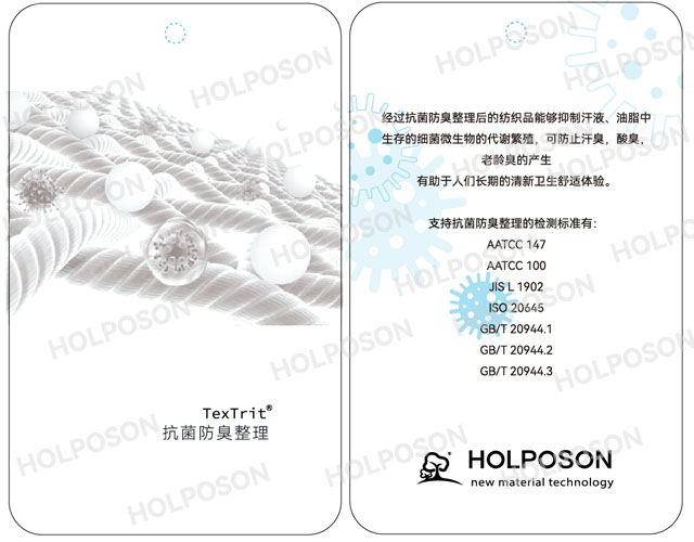 抗菌防臭整理劑 HOLPOSON®CAPTAIN A-C是一種有機(jī)胍類高分子抗菌整理劑 。適用于如棉、黏膠、滌綸、尼龍等天然、合成及其混紡織物。主要應(yīng)用在服裝、家紡、墻布、地毯、醫(yī) 用防護(hù)無(wú)紡布等產(chǎn)品.