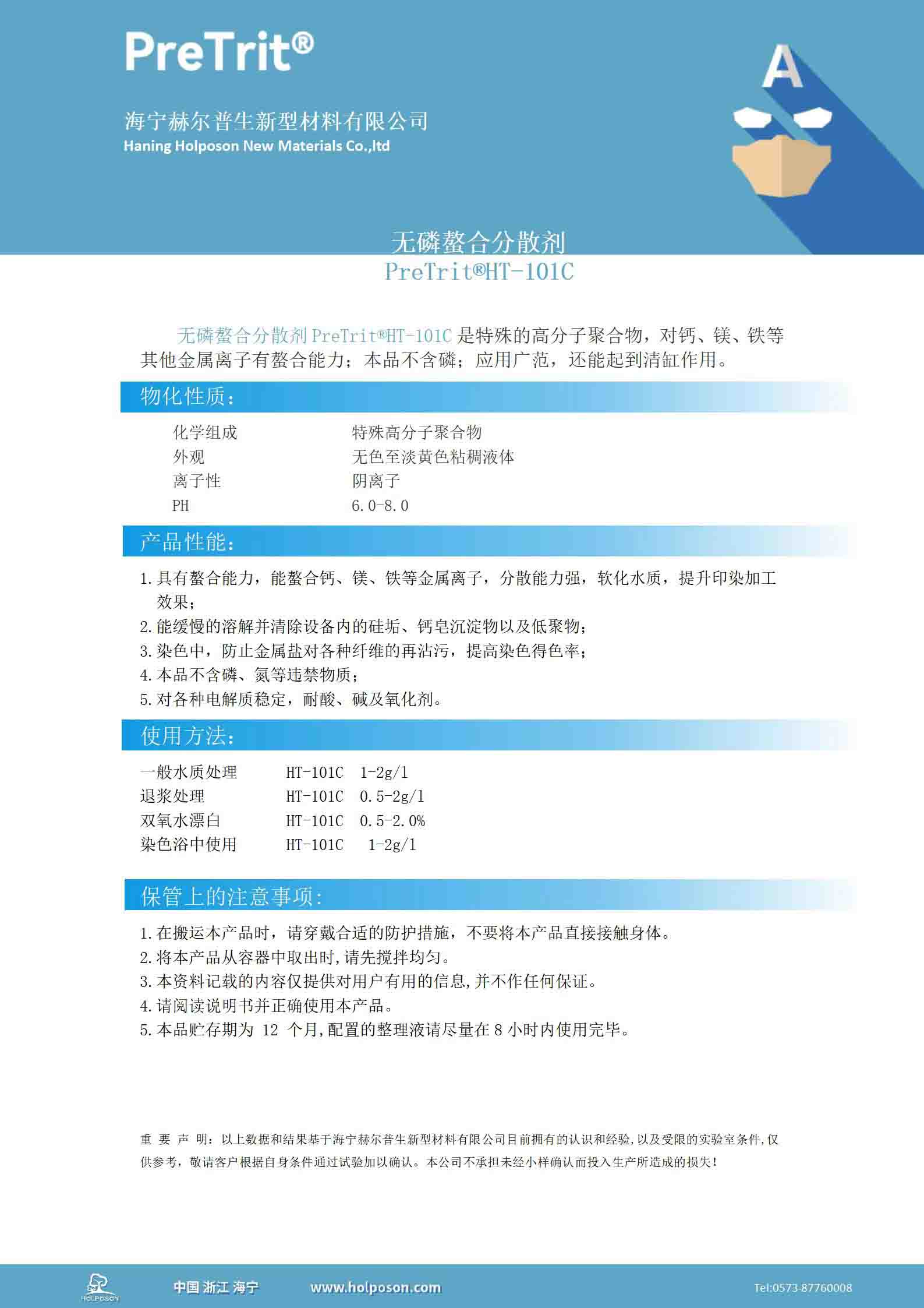 無磷螯合分散劑 PreTrit®HT-101C是特殊的高分子聚合物,對鈣、鎂、鐵等其他金屬離子有較好的螯合能力;本品屬于環(huán)保產(chǎn)品,不含磷;應用廣范,還能起到清缸作用。