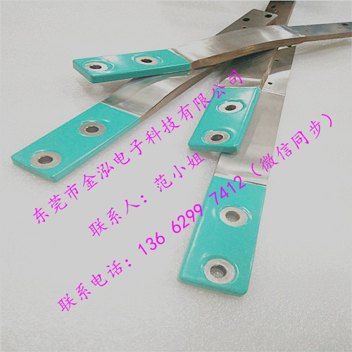 (3)釬焊是將0.03mm-0.5mm厚的銅箔疊片部分壓在一起,采用銀基釬焊料與扁銅塊對焊成型,接觸面可根據(jù)用戶要求鍍錫、銀、開孔等。