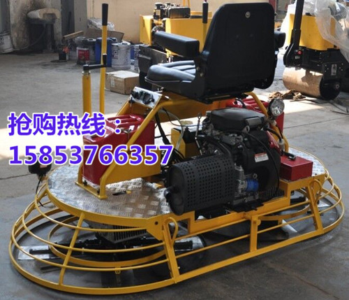 2、第一種是座駕式抹光機(jī),型號 hhmg-s36,自重300公斤,此類抹光機(jī)的發(fā)動機(jī)是進(jìn)口原裝本田汽油發(fā)動機(jī),由兩個1m的圓盤組成,整機(jī)輕巧,可前進(jìn)后退,無級變速。此款機(jī)器保修一年以上。
