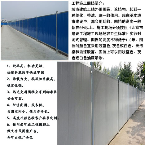4、所有者(使用者)可在彩鋼夾心板工程圍擋上做文字或圖案廣告 ,并可出租廣告 位,充分利用提升空間價(jià)值。