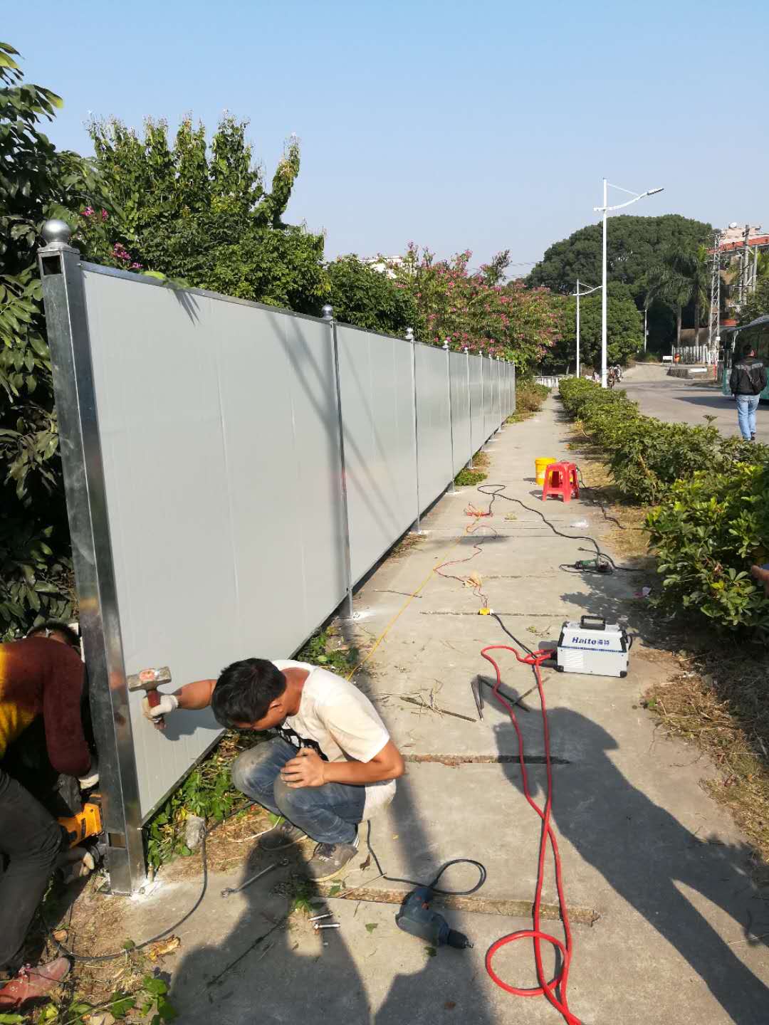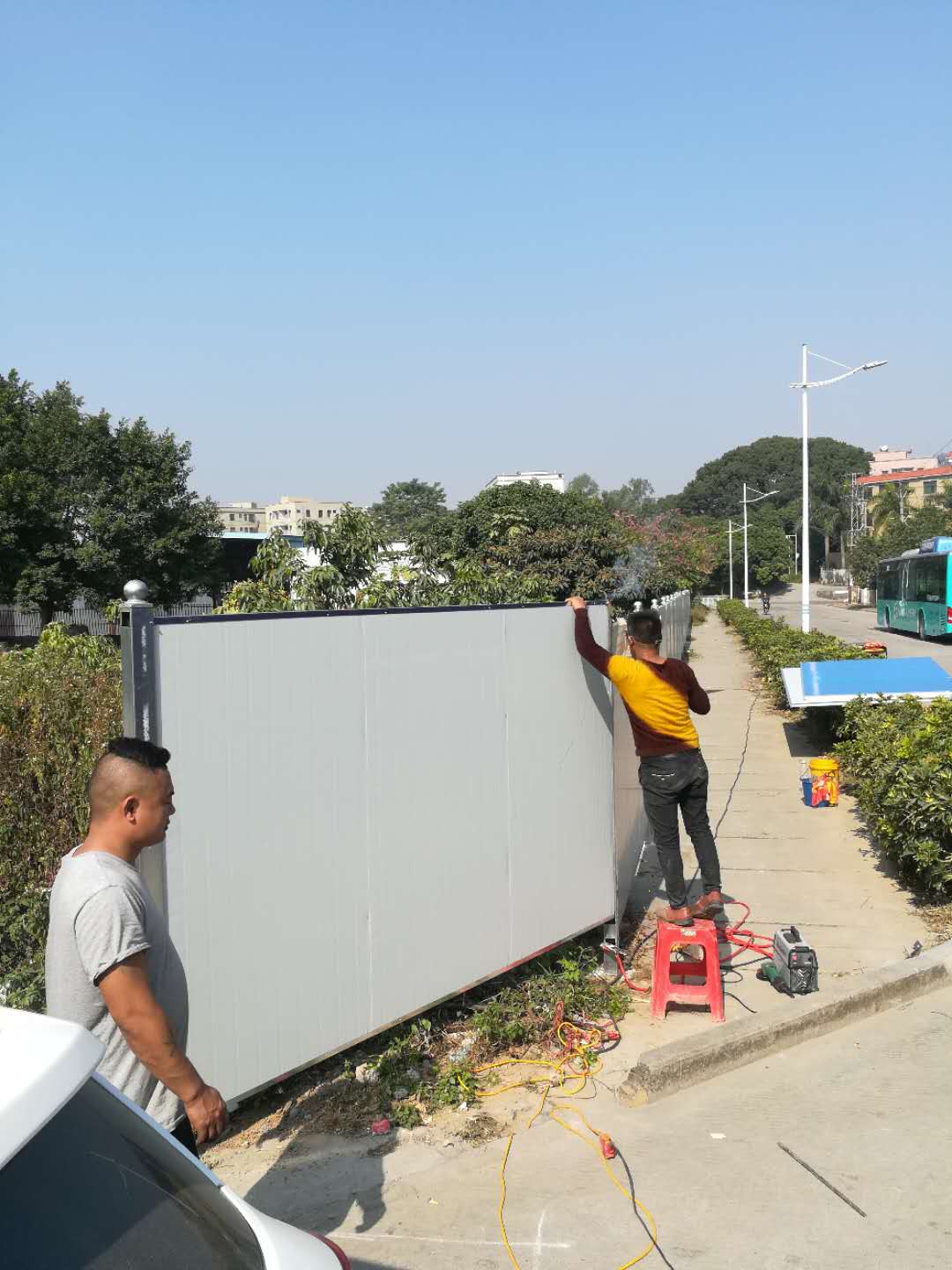 相鄰圍擋可以通過圍擋板兩側(cè)的槽鋼嵌入立柱槽位,用自攻螺絲固定。泡沫夾芯板外形美觀,色澤艷麗,整體效果好,它集承重,保溫,防水于一體,且無需二次裝修,是一種用途廣泛,特別是在對(duì)于建筑工地的臨時(shí)設(shè)施如辦公室,倉庫,