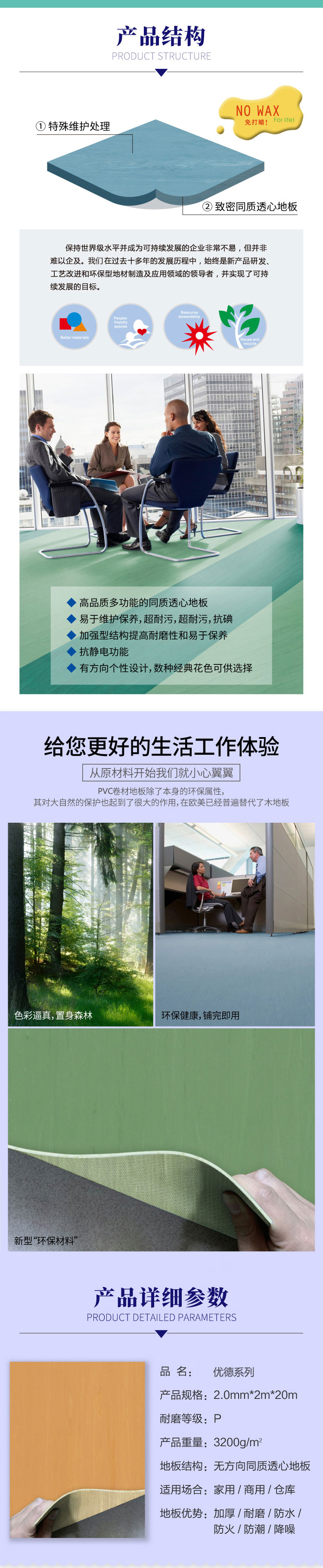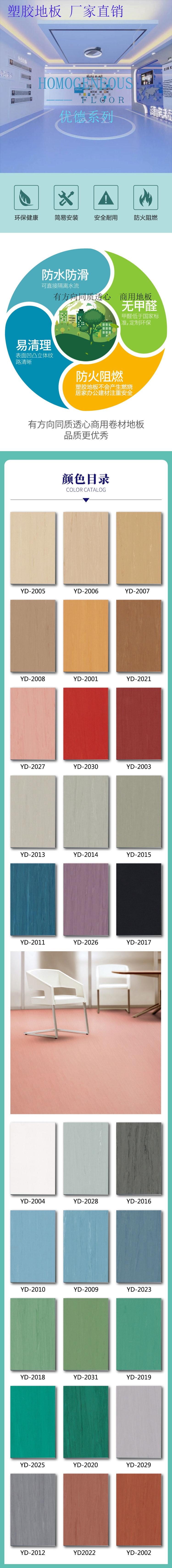 ②:塑膠地板的分類(lèi)。對(duì)于我們所常見(jiàn)的塑膠地板,常規(guī)分成了兩種。第 一 種就是上面跟大家說(shuō)的同種材料的透心的塑膠地板,這種地板就是從內(nèi)到外的花紋和材質(zhì)完全都是一 樣的。第 二種就是一 種復(fù)合型的塑料地板。這種廢塑膠地板的上面是一 種pvc的透明層,而在下面才是印花層或者是發(fā)泡層。③:塑膠地板的來(lái)源。由于塑膠地板是一 種非常廣泛的稱(chēng)呼,是目前來(lái)說(shuō)比較流行的一 種新型的輕型地面裝修材料。塑膠地板其實(shí)從80年代就開(kāi)始進(jìn)入了我國(guó)的市場(chǎng),只是在我們國(guó)家家庭中的使用率不是特別高 。當(dāng)然這里指的是家裝。使用率 高 的是商場(chǎng),體育館,工廠,辦公樓,學(xué)校等公共場(chǎng)所。④:塑料地板的常見(jiàn)類(lèi)型。我們所常見(jiàn)的塑膠地板,一 般是卷材地板和片材地板。卷材地板就是一 卷一 卷的,片材地板就是一 片一 片的。像常見(jiàn)的有1.5m,1.8m,2m的卷材地板,每一 卷的長(zhǎng)度有5m,15m,20m等等。它的厚度一 般是1.6毫米~3.2毫米之間。當(dāng)然了,厚的還有4毫米,5毫米,6毫米的。