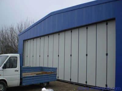 工業(yè)折疊門適用于洞口兩側(cè)不具備推拉門安裝空間,且門楣空間能滿足安裝要求的建筑門洞,具有靈巧、開啟迅速、占用門洞以外空間少等優(yōu)點。適合消防車庫、廠房等要求快速開啟、關(guān)閉的場所。