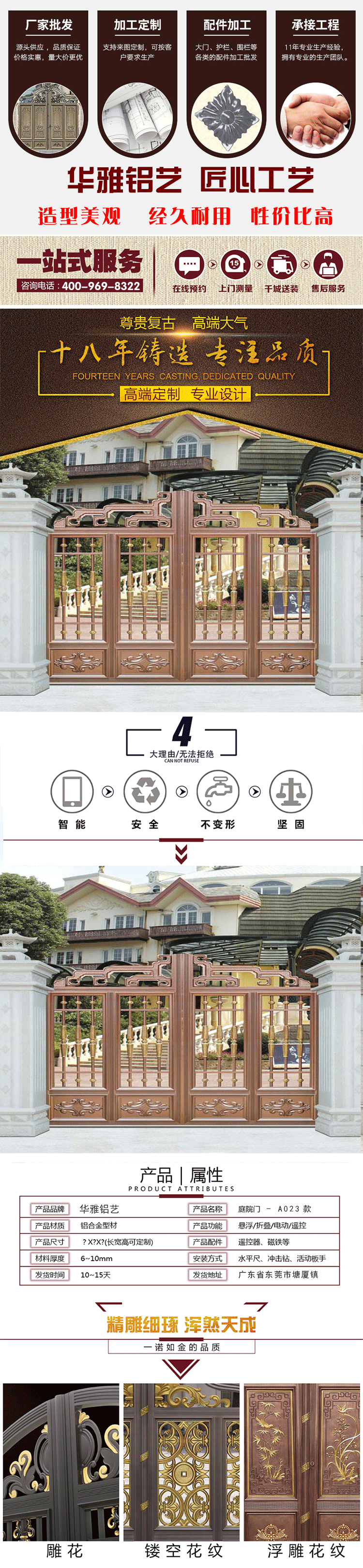 以上是東莞市華雅金屬制品有限公司廠家直供海南廠家直銷別墅鋁合金庭院大門/湖北鋁藝農(nóng)村入戶圍墻門江蘇的詳細信息,如果您東莞市華雅金屬制品有限公司廠家直供海南廠家直銷別墅鋁合金庭院大門/湖北鋁藝農(nóng)村入戶圍墻門江蘇的價格、廠家、型號、圖片有什么疑問, 請 聯(lián)系供應(yīng)商 或 請供應(yīng)商聯(lián)系我