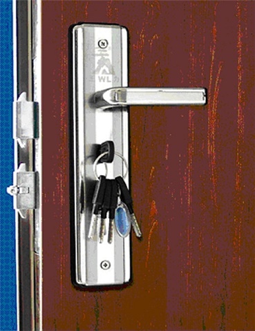 (1)特能鎖[專利號(hào)zl—00—2—5—3888.1]。其特點(diǎn):1、全方位自動(dòng)上鎖,卓越的自保裝置功能,只要門扇與門框輕輕合上,鎖舌對(duì)準(zhǔn)鎖孔無需鑰匙及其他控制器械,全方位各鎖點(diǎn)便能自動(dòng)上鎖。2、特殊的防撬鉤,采用特殊雙向防撬鉤,增加防撬難度,越撬越防撬。3、獨(dú)特的間隙補(bǔ)償功能,采自動(dòng)調(diào)節(jié)門扇與門框的間隙,使門扇與門框靠緊,避免因風(fēng)吹或人為原因使門扇與門框接觸發(fā)出噪音,使居家更舒適。4、特殊的滾輪裝置,關(guān)門時(shí)滾輪率先接觸門框,平滑上鎖,減少了對(duì)門框的摩擦,并具有較好的消音作用
