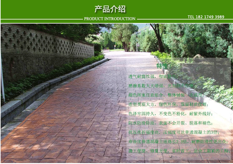 上海九路景觀工程有限公司供應(yīng):壓花地坪,壓模地坪,水泥壓花,水泥壓膜,壓膜水泥,混凝土壓花,混凝土壓模,壓花地面,壓花路面,壓花道路,壓花水泥,壓花混凝土,壓模地面,壓模路面,壓模道路,壓模水泥,壓模混凝土,壓印地坪,壓印混凝土,水泥壓印,壓印水泥,藝術(shù)地坪,彩色混凝土,裝飾混凝土,仿石地坪,仿木地坪,仿木地面,仿木路面,仿木混凝土,混凝土仿木,仿石地面,仿石混凝土,混凝土仿石,模壓地坪,模壓混凝土,模壓路面,彩色水泥,仿石壓模地坪,壓模仿石地坪,透水地坪,透水地面,透水路面,透水道路,透水混凝土,無砂混凝土,彩色地坪,彩色地面,彩色路面,彩色道路,藝術(shù)彩坪,壓磨地坪,歡迎垂詢!