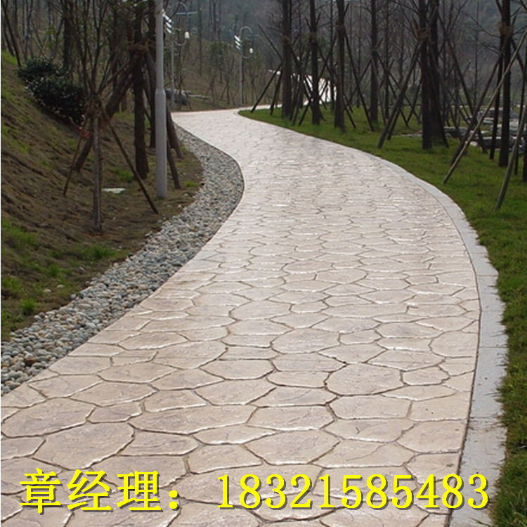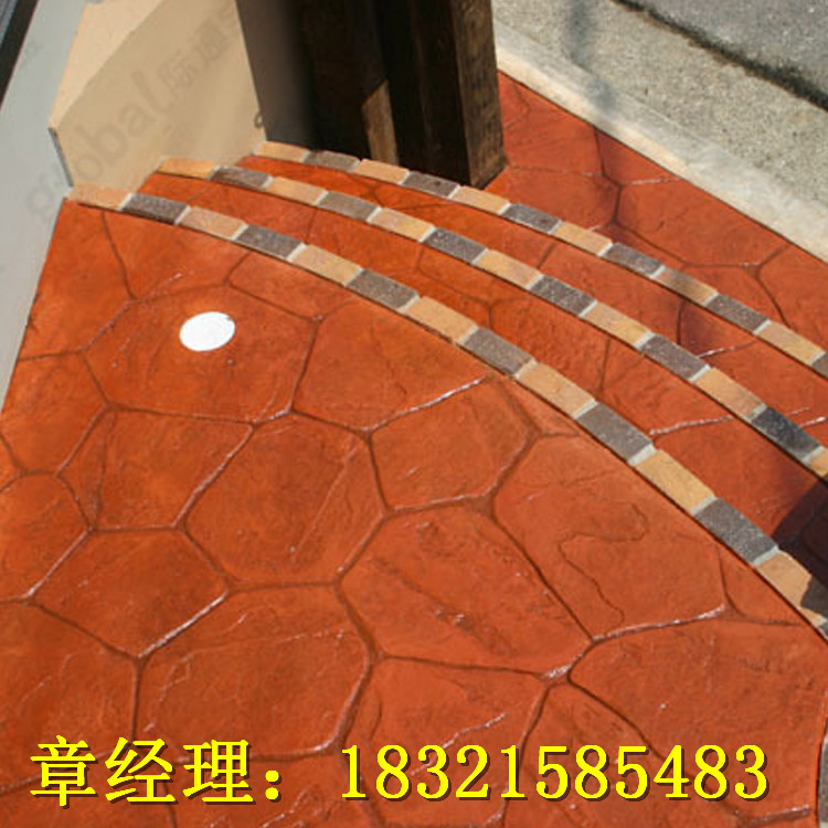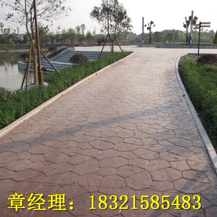 2、用本強(qiáng)化劑 材料制作的彩色壓模地坪具有耐磨、防滑、抗凍、不易起塵、易清潔、高強(qiáng)度、耐沖擊、且色彩和款式方面有廣泛的選擇性、成本低和綠色環(huán)保性等特點(diǎn),是目前園林、市政、停車場、公園小道,商業(yè)和文化設(shè)施領(lǐng)域的理想選擇。
