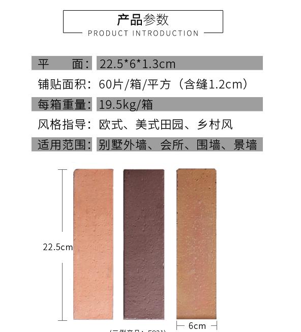 產(chǎn)品描述:外形是有規(guī)則長方形,棱角分明,長短、大小、厚薄勻稱,是在坯料中加以顆粒,在切割時自然產(chǎn)生拉絲,從而使磚的表面具有顆粒和凹坑的質(zhì)感。
