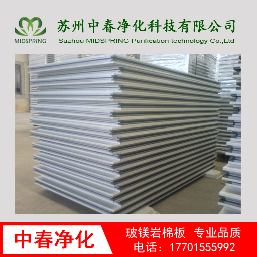 3)玻鎂板:采用5mm后玻鎂板平鋪在巖棉上,增強巖棉夾芯板的抗彎曲強度和平整度。