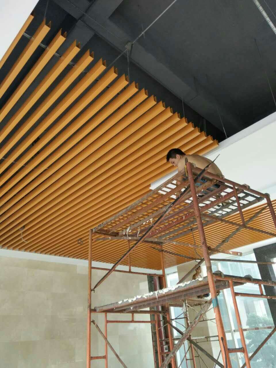 木紋鋁方通吊頂通過連續(xù)滾壓冷彎成型的,安 裝結(jié)構(gòu)為專用龍骨卡扣式結(jié)構(gòu),安 裝簡單方便,大多用于地鐵、高鐵、休閑場所、購物商場等公共場所,可以使空氣流通、通風(fēng)、散熱,還能夠使光線分布均勻,使整個(gè)空間看起來更明亮簡潔。